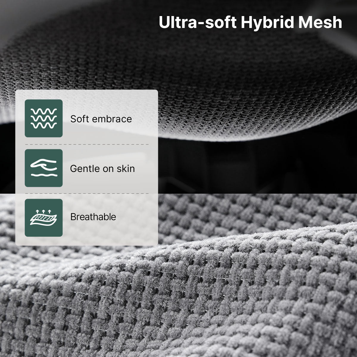 - Seat & back: hybrid mesh (chenille, TPEE & polyester)